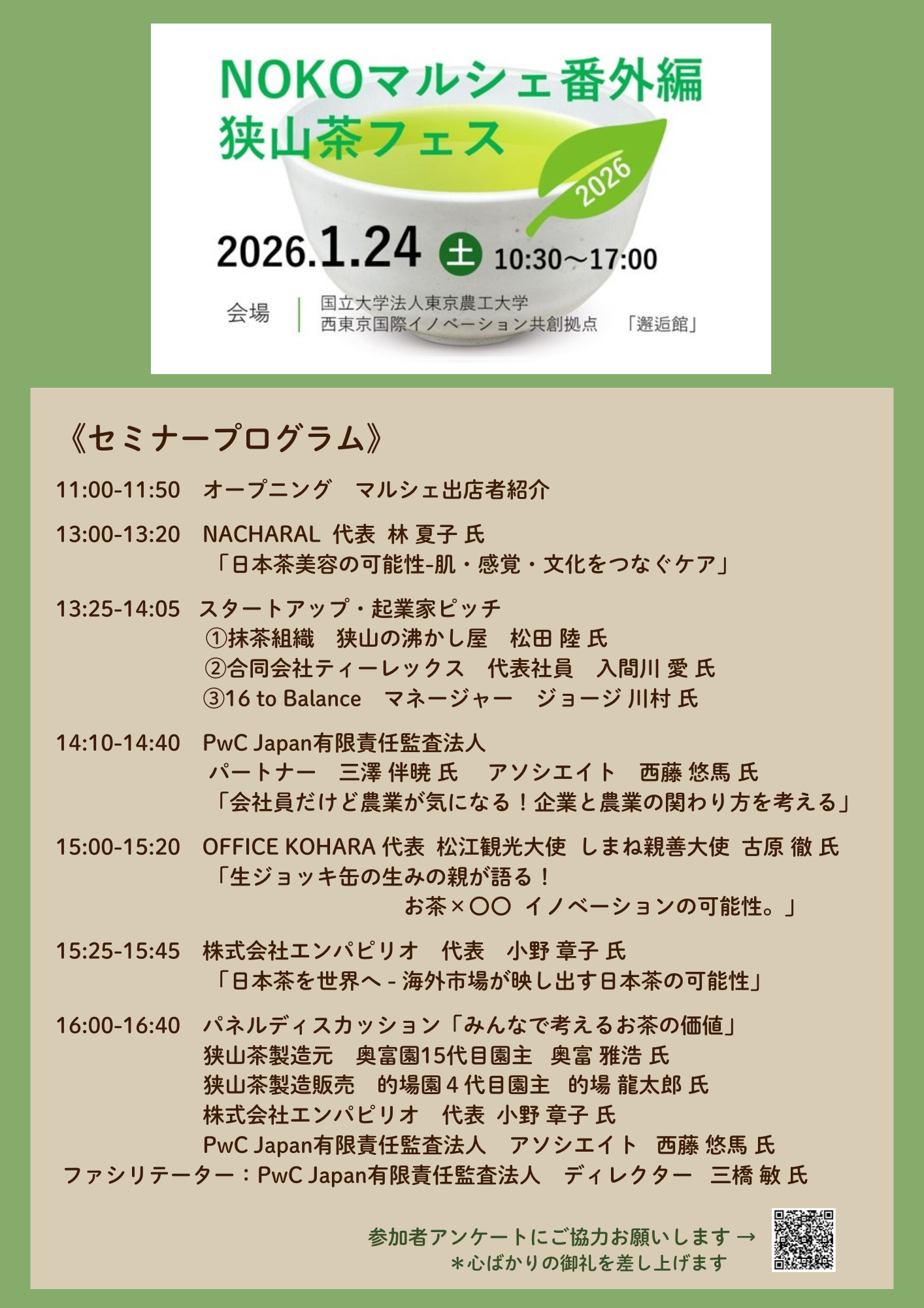 1月24日(土)にお茶に関する「楽しむマルシェ」と「考えるセミナー」を一度に体験できるイベント(参加無料)を開催します!